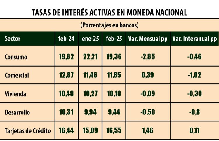 Además, si bien las tasas de los créditos en guaraníes (14,63%) se encuentran por debajo de los niveles de 2024 (15,93%), se registran los valores más altos de los últimos ocho meses.