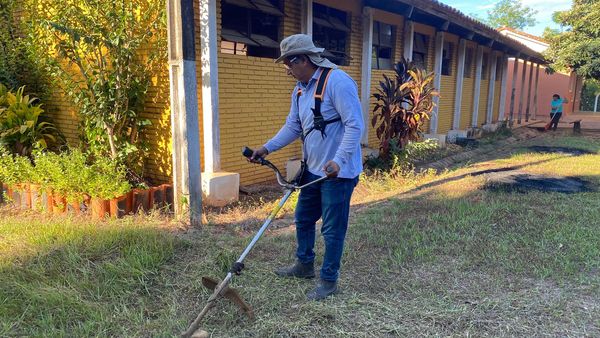 Los docentes de la Escuela Coronel Vicente Mongelos, se unieron para poner en condiciones el local escolae y recibir a los niños este viernes en su primer dia de clases. Los educadores encabezado por su director Profesor Osvaldo Ovando, tomaron los machetes, la desmalezadora y las escobas para limpiar y dejar en optimas condiciónes la institución educativa para el primer dia de clases este 23 de febrero.